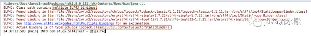 SLF4J会提示Classpath 包含多个SLF4J的实现,已经最终从这些中选择的是logback实现。