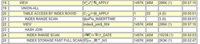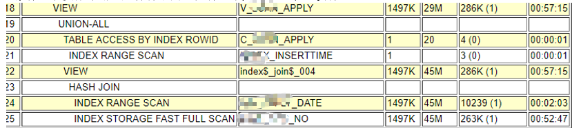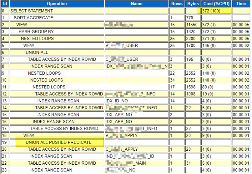 而差的执行计划没走UNION ALL PUSHED PREDICATE,也就导致没有用上视图里两个表的id索引,走了其他索引或者干脆全表扫,因此性能变得非常差。
