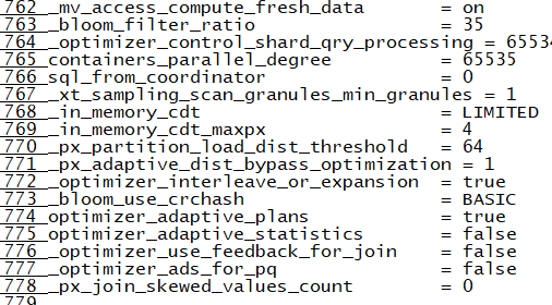 Alter session set “_fix_control”=“bugno:off”;Alter session set “_fix_control”=“bugno:0”;