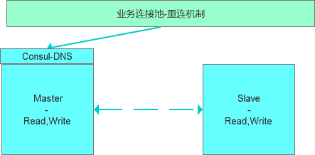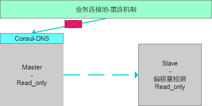 切换前,整个服务状态如下,其中主库可读写,从库只读,通过Consul服务访问至主库