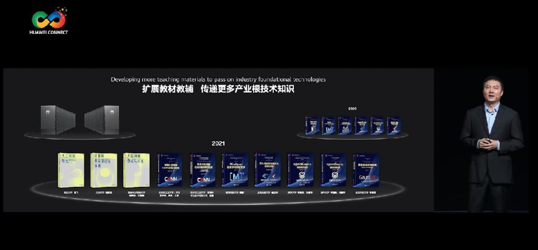 在华为全联接2021大会期间,华为计算产品线总裁邓泰华介绍了智能基座教辅教材、教研室建设及慕课相关情况。他指出,在教育部的指导下,未来智能基座项目将进一步深入。在本次大会上发布了包括《openGauss数据库源码解析》、《openGauss数据库实战指南》、《数据库原理及应用-基于GaussDB的实现方法》三本Gauss数据库书籍在内的七本教辅,并与国内教学名师合作推出“人工智能导论”等三本教材。