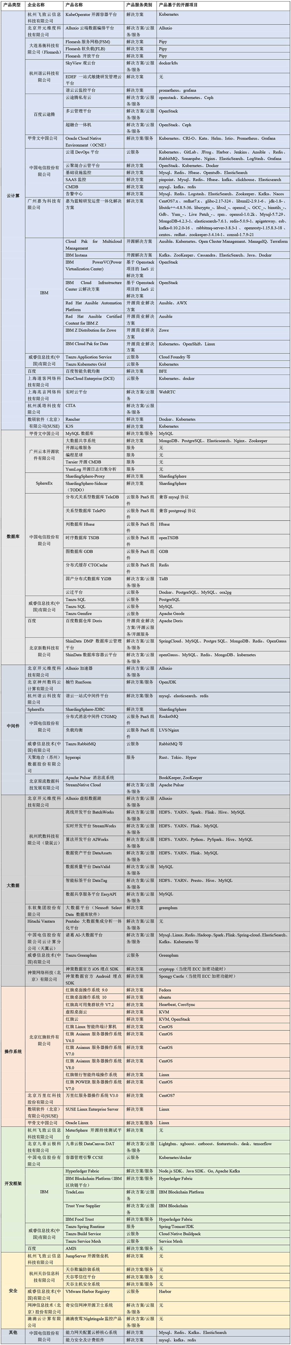 图6 操作系统领域开源供应商全景图(第一批+第二批)