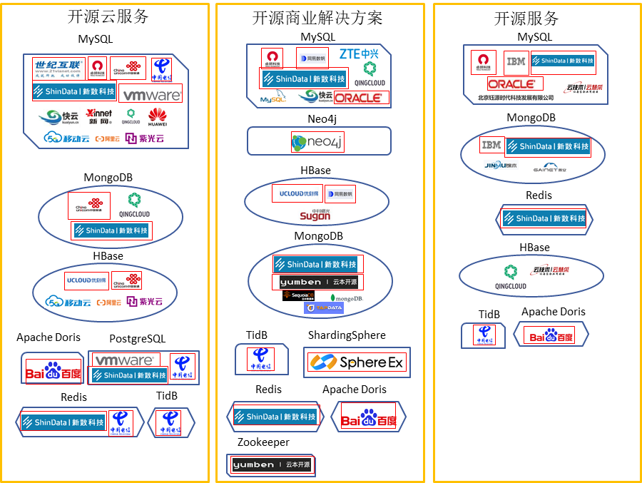 图3 数据库领域开源供应商全景图(第一批+第二批)