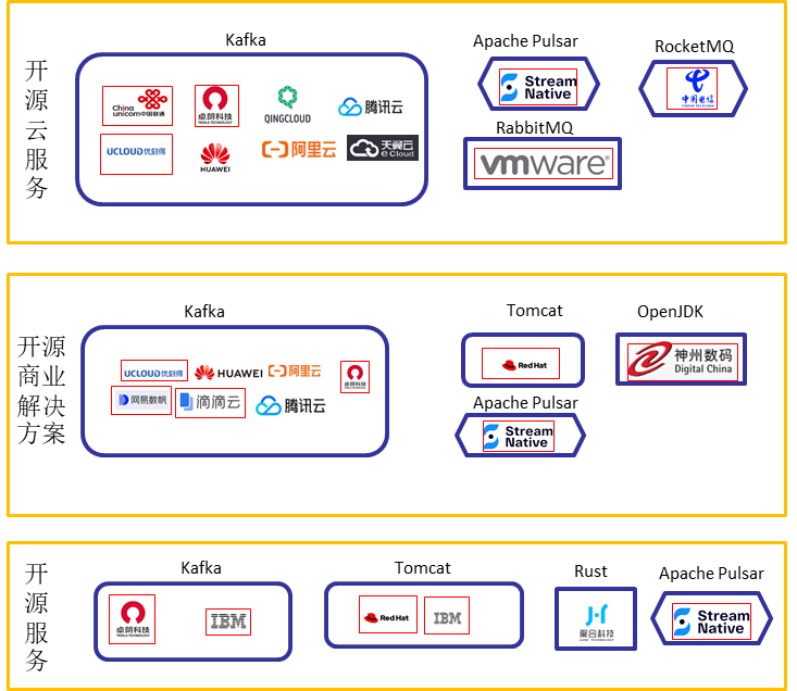 中间件类型较少。当前中间件开源软件种类庞大,但提供商业支持的仅围绕Kafka、Tomcat等少数技术路线。