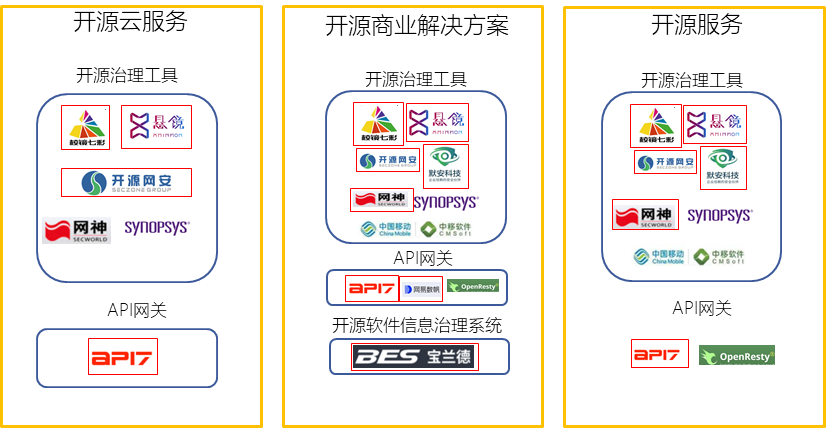 注:图中标红为此次提供征集材料的开源供应商,其他为前期调研收集的开源供应商。