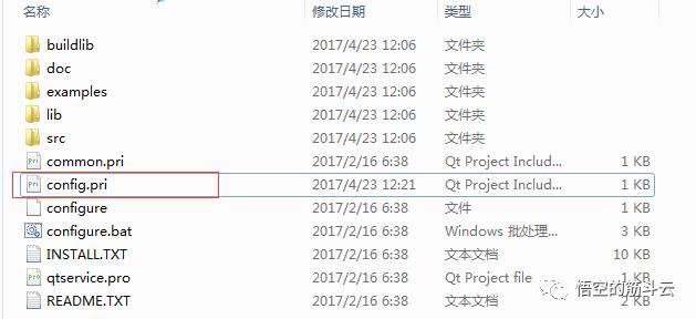 在我们的项目目录下多出一个config.pri的文件,这个就是我们执行配置命令后生成的。