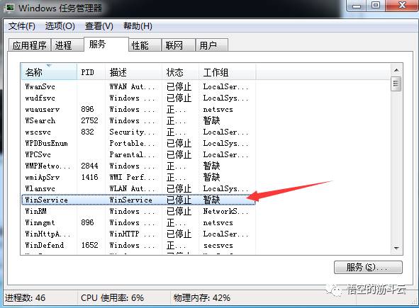 打开任务管理器查看安装的服务,处于已停止的状态,那是我们没有设置成自动启动,我们可以手动启动看看,
