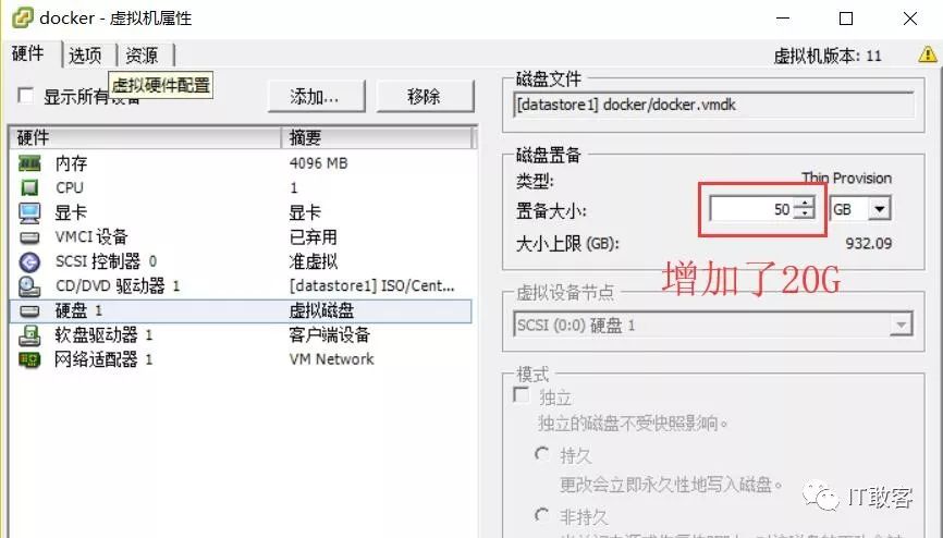 接下来,我们直接在硬盘 1 上面增加空间,增加到 50G。如下图所示