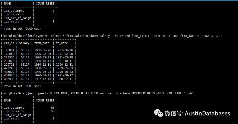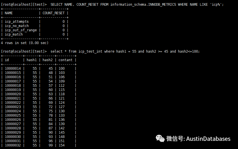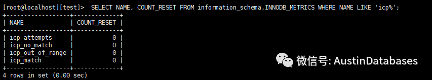注:查看是否走ICP 的详情,通过 SELECT NAME, COUNT_RESET FROM information_schema.INNODB_METRICS WHERE NAME LIKE 'icp%';