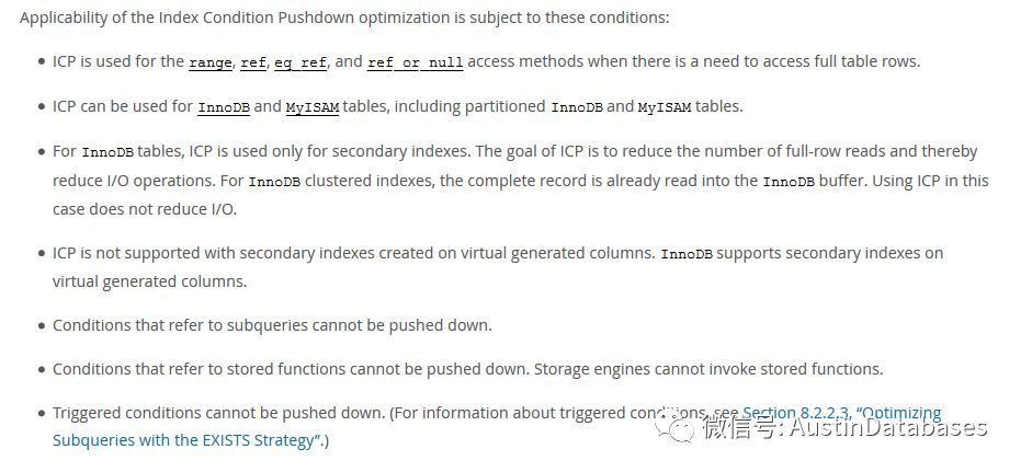 上面是比较官方的说法,如果用大白话来说明,一句话,减少在使用二级索引查询中因为二级索引中不包含某些字段,而造成的部分不再INNODB 引擎层处理的数据上行到 SERVER 层,造成的I/O消耗。