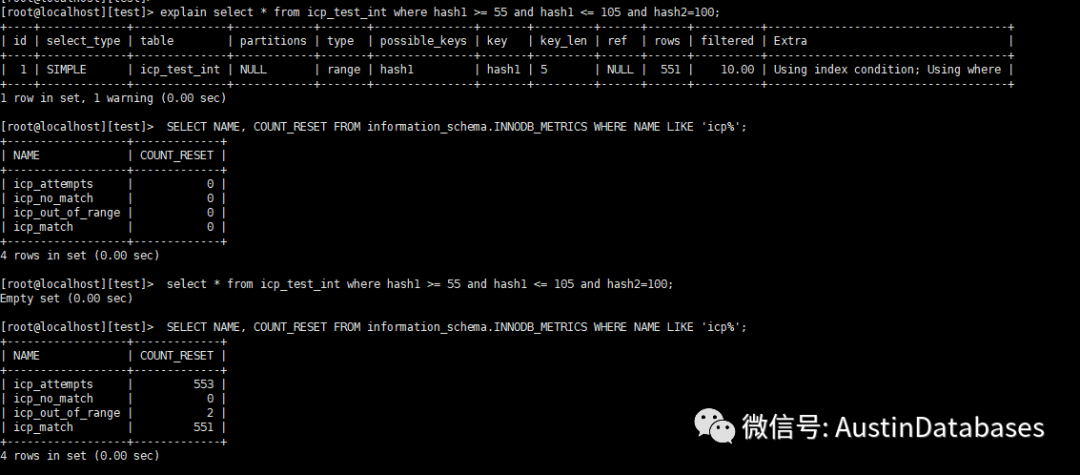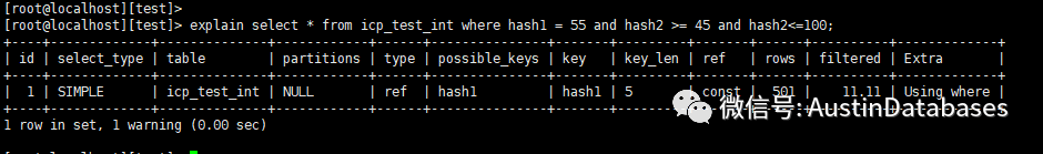 我们稍微变化一下查询,我们可以看到,即使查询中没有结果,还是走了ICP