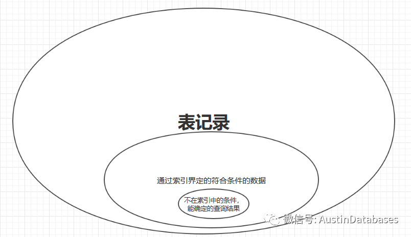 那么问题来了,到底怎么才能走ICP , 大家稍微可以注意,凡是走ICP 的时候,大部分情况下都是通过 INDEX 获取的数据的范围,与索引之外的其他条件相比,不能快速界定要查找的数据。(估计这样说,我也看不明白我说什么,画一张图),通过图可以看到,一般走ICP的时候,大部分情景都是非索引的条件,比走索引更能定位要查询最终的结果,同时走索引还是可以排除一大部分数据的情况下,否则就走全表扫描了(注意:是大部分情景)