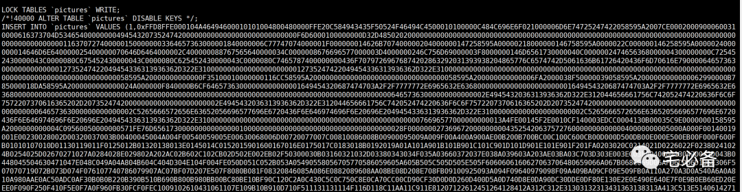 mysqldump -uroot -p --single-transaction --set-gtid-purged=OFF --databases test --hex-blob --tables pictures > tmp/hex.sql3. 该参数影响