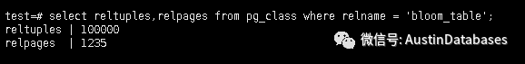 我看一下bloom_table 的表行数和占用的PAGE 数。