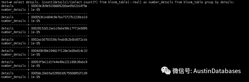 下面就是通过SQL 语句来给出每行的值来计算一个“采样率”的东西,也就是告诉你,这个行的值在整体的表中的占比。