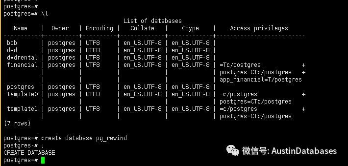 4 我们在176上进行创建一个pg_rewind库的操作,此时 两个库已经数据不一致了