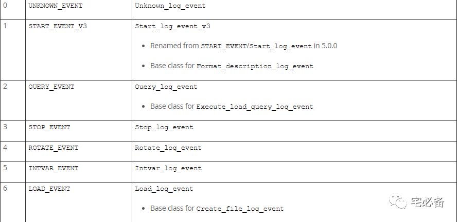 一些事件是没有类型代码的,因为他是其他事件的基类,如Log_event ,这些并不会写在日志文件中