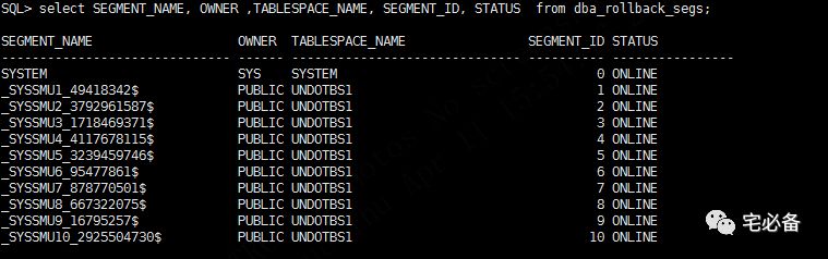 可以在DBA_ROLLBACK_SEGS视图中找到回滚段的名称,ID以及状态
