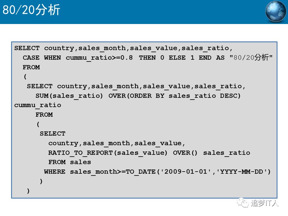 六年前因为工作写的,现已把与工作相关的全部删除,只保留纯技术部分,也解封了吧;站在今天的角度看,还有很多知识点没涉及到,因长久不接触,也懒得写下去了;SQL也算是单独的一门语言了,入门容易,也许每个程序员都会说精通SQL,但真正洞悉SQL本质的寥寥无几,SQL与数据库体系,SQL与性能优化,SQL与索引,SQL与执行计划,SQL与XML、SQL与CTE、SQL与递归等等;小小的一条SQL可以写几百行,可以运行几天,而不同的人写也许几行几十行足以,也许能够快上几千上万倍速度;真正的DBA也往往是SQL高手,举重若轻,原来的itpub就是藏龙卧虎之地;随着大数据时代的变迁,SQL也在与时俱进,不断发展中。