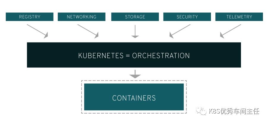Kubernetes 还需要与联网、存储、安全性、遥测和其他服务整合,以提供全面的容器基础架构。