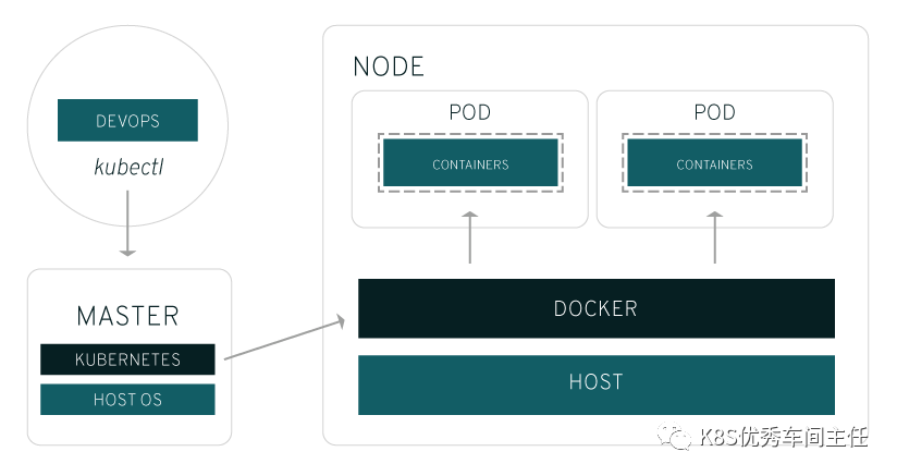 Kubernetes 基于操作系统运行(例如红帽企业Linux),并与在节点上运行的容器集交互。由 Kubernetes 主机接收管理员(或 DevOps 团队)发出的命令,然后将这些指令转发给从属的节点。这种移交操作与多种服务同时作用,自动确定哪个节点最适合执行该任务。然后,它将在该节点分配资源,并指派容器集来完成任务请求。
