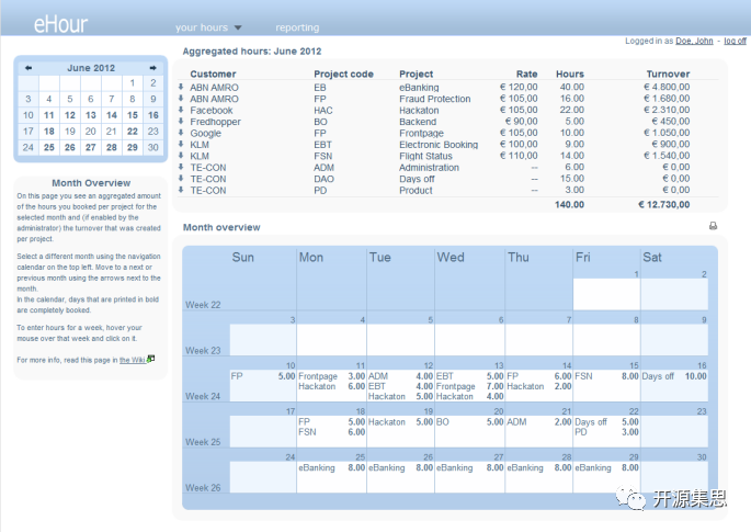 eHour 是一个完全开源的、基于网络的时间表跟踪软件,非常适合个人和公司提高生产力。该应用程序非常简单,具有用户友好的界面。如果您是自由职业者、雇员或任何其他按小时计酬的个人,eHour 将帮助计算花费的时间,以便您可以轻松准备发票或任何其他帐单。如果您着迷并且可能想试用该应用程序,则需要在您的工作站上安装 Java 运行时环境 (JRE)。该应用程序的行为类似于将在计算机上托管的服务器,任何人都可以通过网络浏览器访问该服务器。