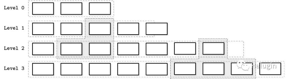 级别之间的大小呈指数级增长:每一级别上的表都比上一级别上的表大。这样,最新的数据总是在索引最低的那一层,而较旧的数据则逐渐迁移到较高的那一层。