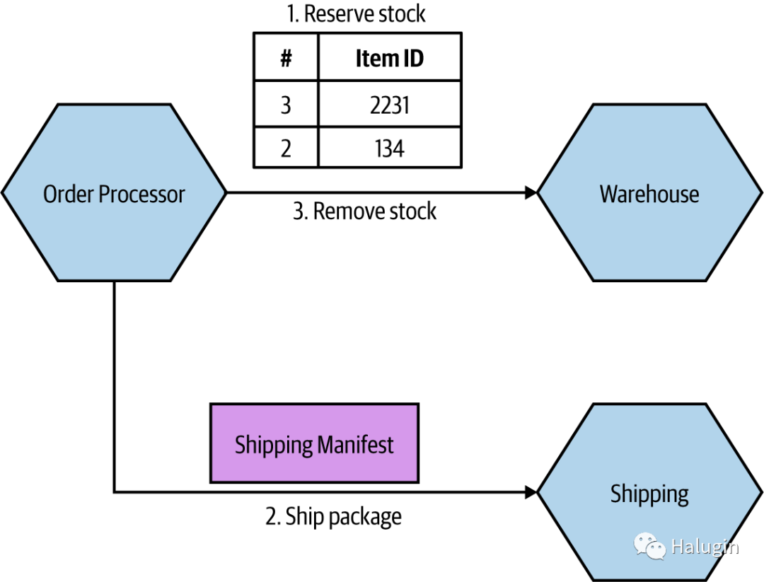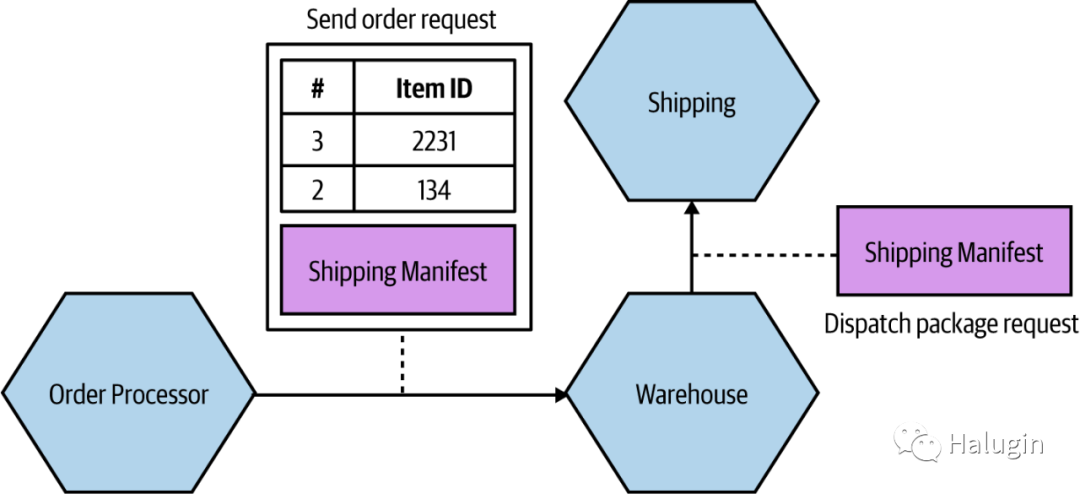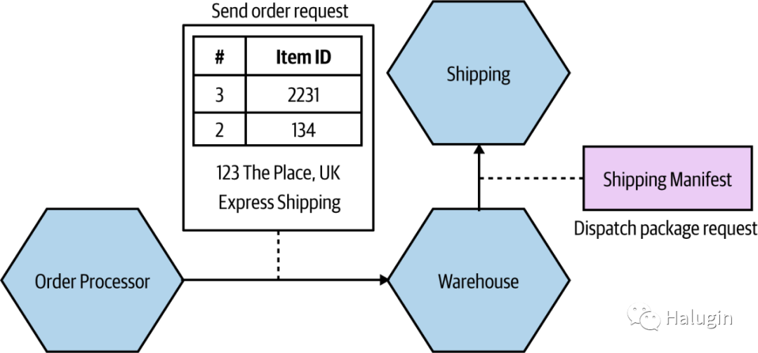 不仅包含客户的地址,还包含Shipping类型。仓库只是把清单传递给下游的Shipping