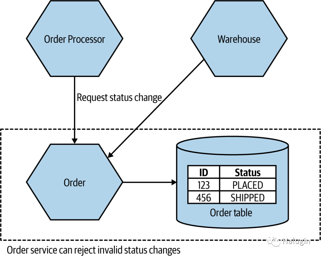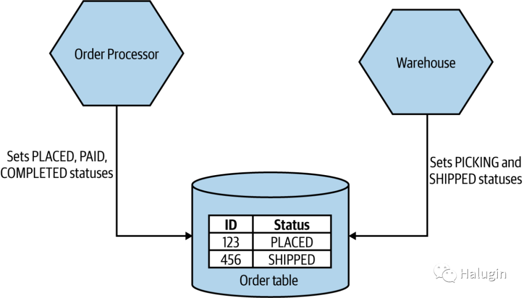 这里的一个潜在解决方案是确保单个微服务管理订单状态。如图9中,无论Warehouse