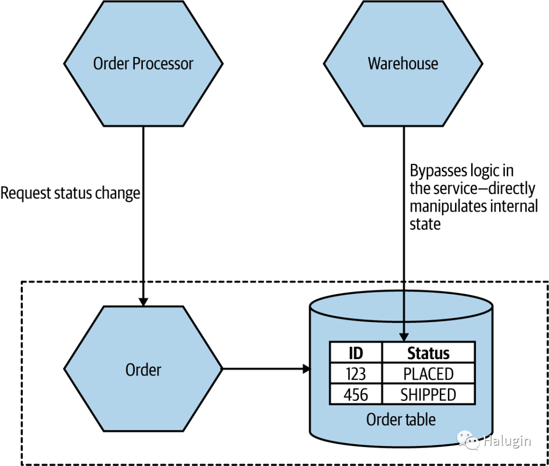服务时,我们现在必须非常小心地更改特定的表—-即使假设对我们来说这个表显然是被外部直接访问的。这里的简单解决方法是让Warehouse