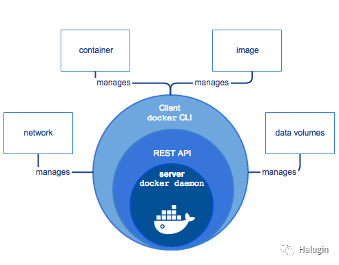 图4向我们展示了Docker引擎及其各个组件的架构。Docker最初是一个整体应用程序,将上述所有功能构建到一个称为Docker引擎的二进制文件中。该引擎包含docker客户端或CLI,允许开发人员构建、运行和推送容器和镜像。Docker服务器作为守护进程运行,管理运行容器的数据卷和网络。客户端通过docker API与服务器通信。Containerd来管理容器的生命周期,然后runC来生成容器进程。