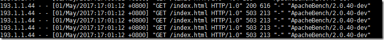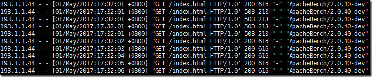 得到下面的结果,很明显并发被限制住了,超过阈值的都显示503: