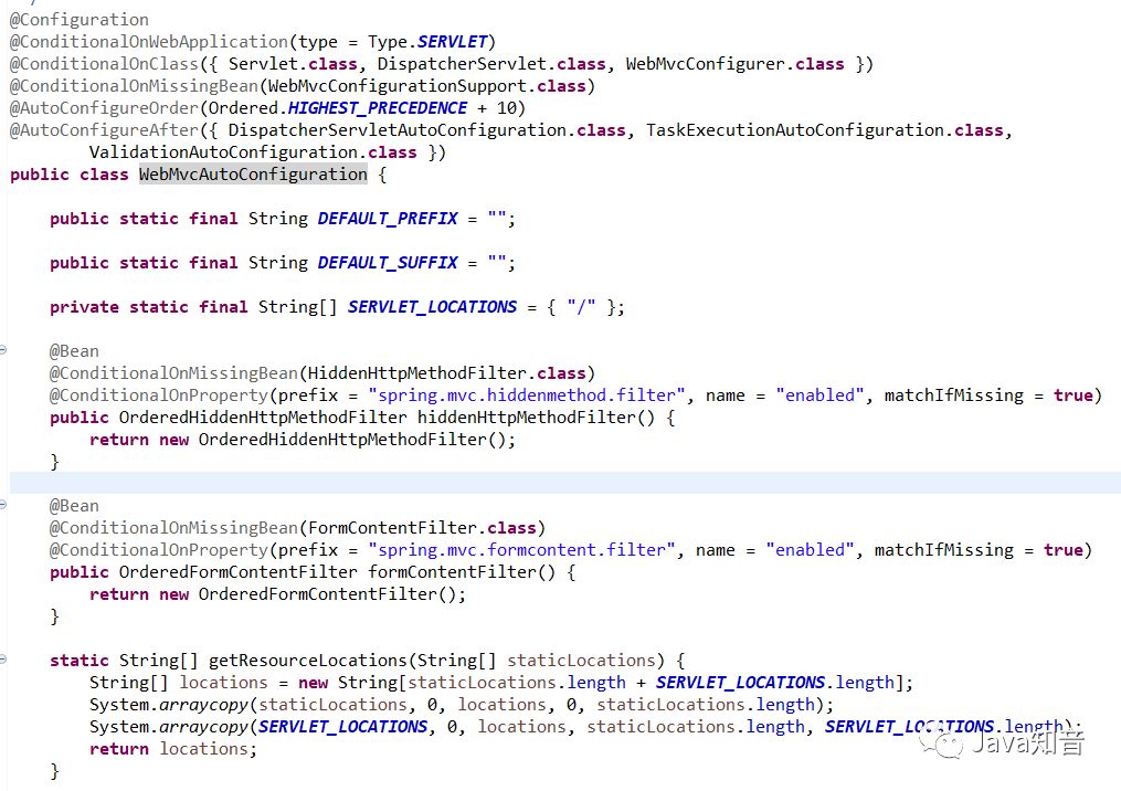 我们依旧是选取SpringMVC的自动配置类,我们来看看其中有些什么东西。