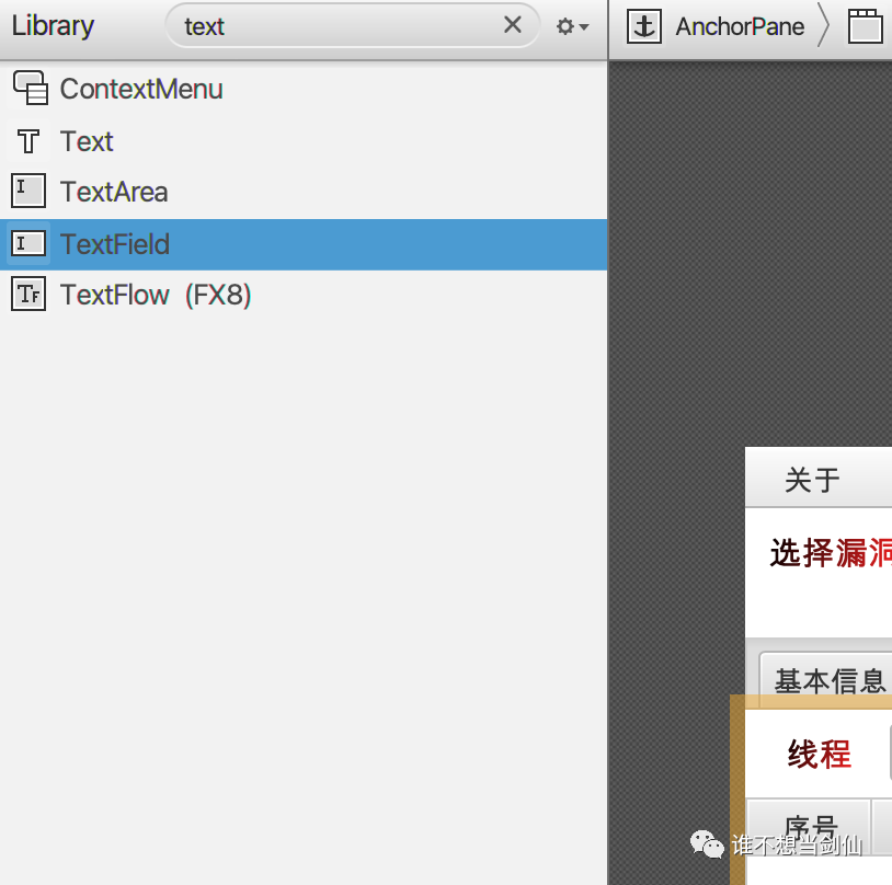 比如想添加一个 输入框,搜索框查询,然后拖一个 TextField