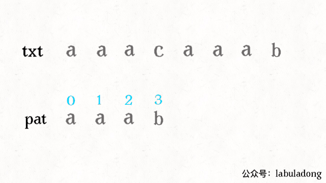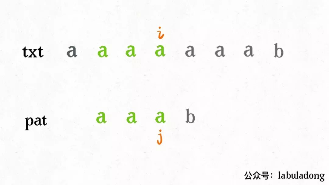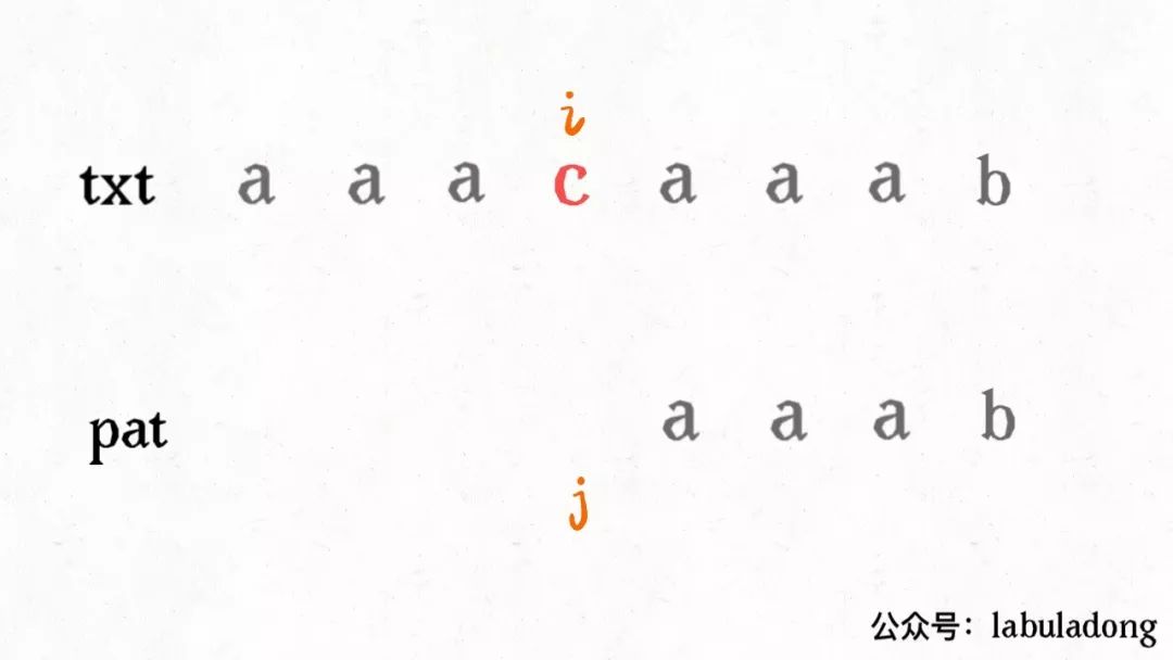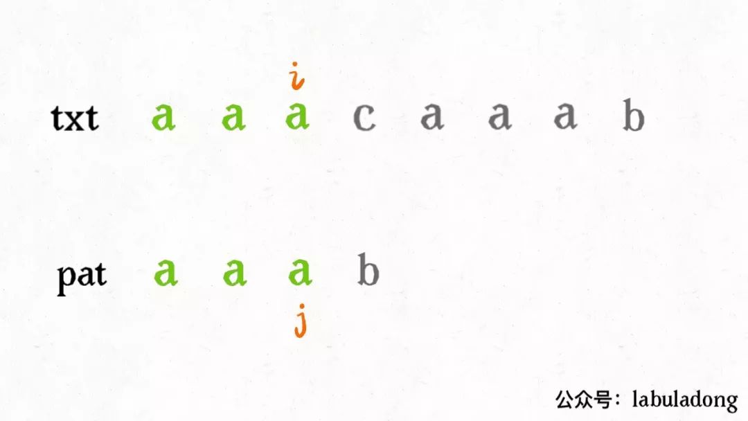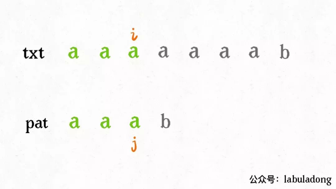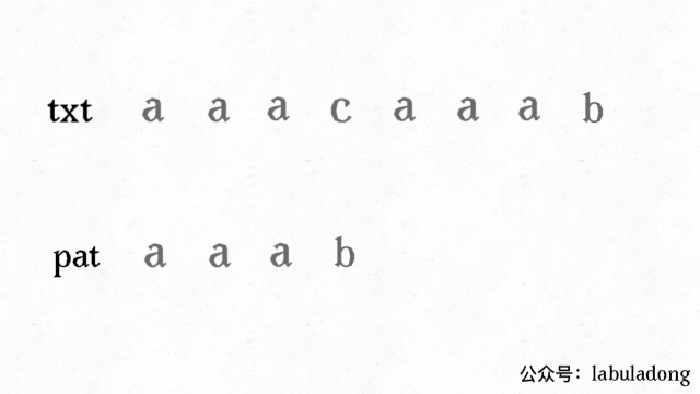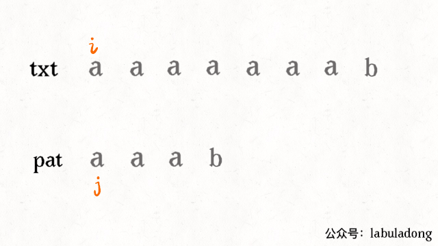 再比如类似的 txt = "aaaaaaab" pat = "aaab",暴力解法还会和上面那个例子一样蠢蠢地回退指针i