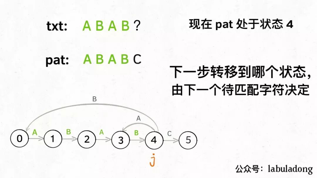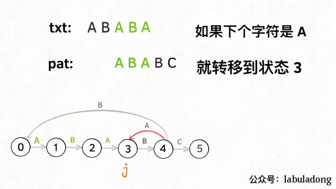 的过程中,只要明确了「当前处在哪个状态」和「遇到的字符是什么」这两个问题,就可以确定应该转移到哪个状态(推进或回退)。