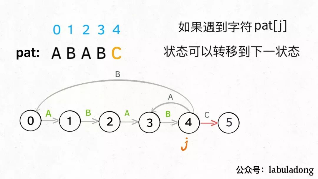 的匹配就是状态的转移。比如当 pat = "ABABC":
