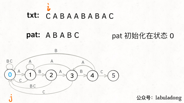 为什么说 KMP 算法和状态机有关呢?是这样的,我们可以认为pat
