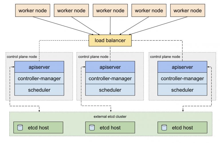 etcd的实现是以这样一种方式构建的,以实现Kubernetes中的高可用性。etcd可以作为pod部署在主节点上。