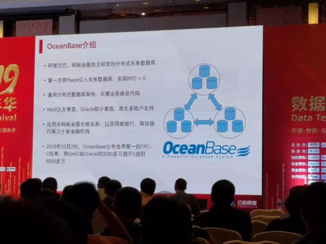 一年之后的2019年10月2日,在另一个特殊的赛场上,中国人又破了一项尘封9年的世界纪录——全球数据库领域最权威的国际事务处理性能委员会(TPC)在其官网上宣布,阿里巴巴/蚂蚁金服的分布式关系数据库OceanBase打破数据库基准性能测试(TPC-C)的世界纪录,其tpmC值超过6000万,是前世界纪录保持者Oracle数据库的两倍。