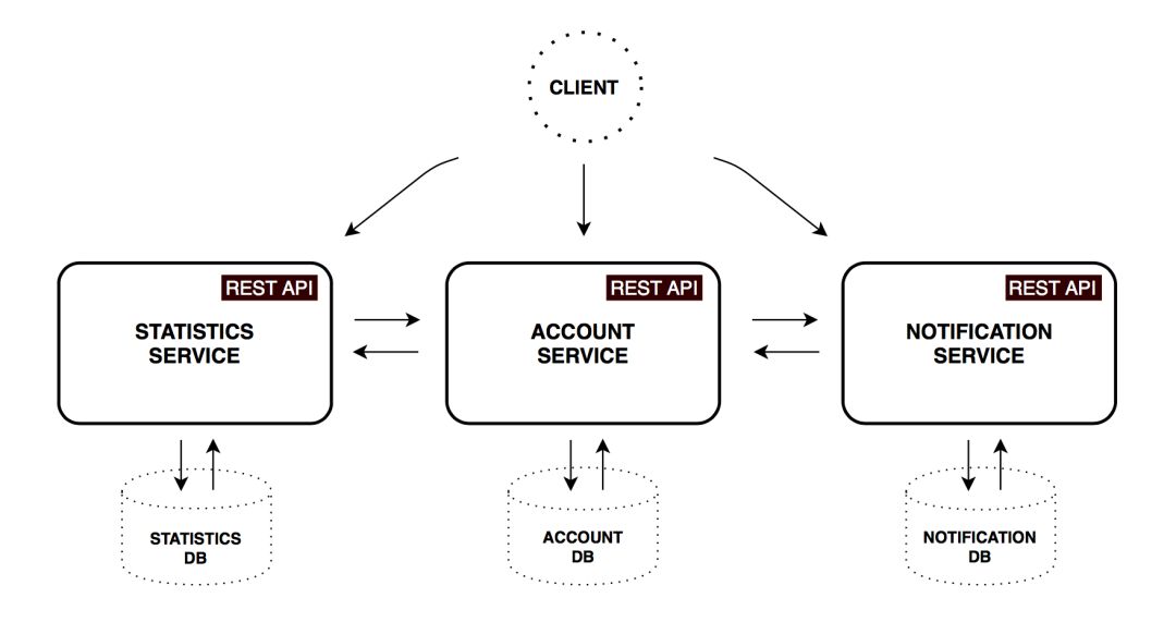 您可以看到,有三个核心服务。它们向客户端暴露外部API。在现实系统中,这个数量可以非常快速地增长,同时整个系统将变得非常复杂。实际上,一个复杂页面的渲染可能涉及到数百个服务。