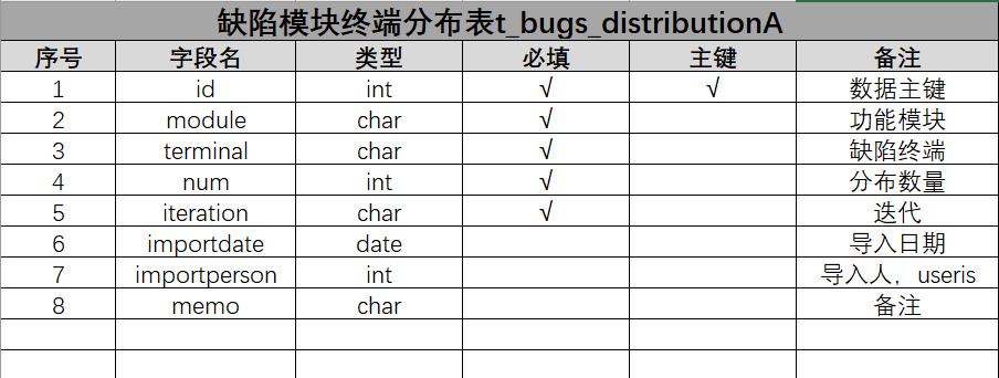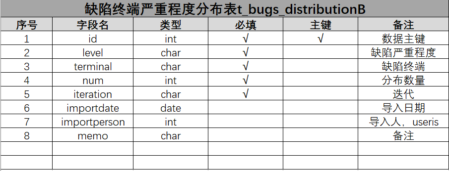 3、缺陷终端严重程度分布表t_bugs_distributionB