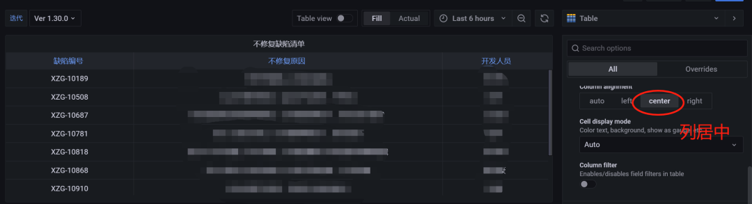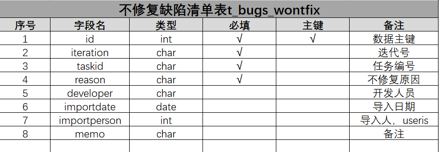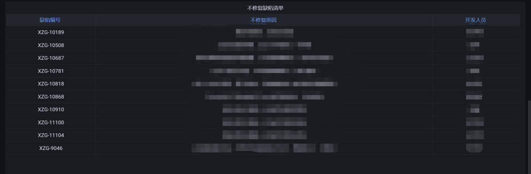 将不修复的缺陷清单以表格形式展示,图表类型Table。