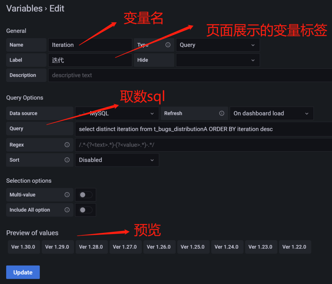 在面板通过切换变量实现查看不同迭代的报表内容。