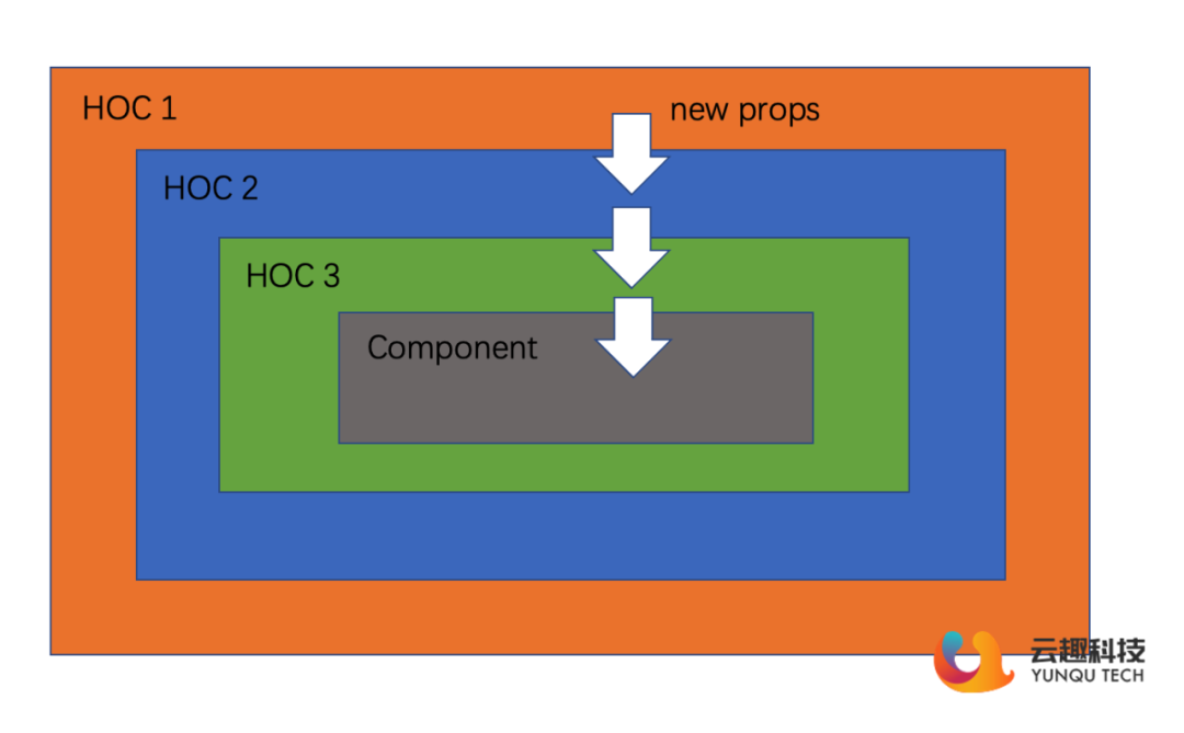 可以看到,高阶组件对于逻辑的侵入比起 Mixin 要小不少,但还是避免不了地对子组件的 props 对象造成了入侵(尤其是 props 拦截),搭配装饰器虽然能让整体复用写法更加优雅,但如果业务组件复用了很多逻辑,那头上就会出现一堆的装饰器, props 中方法的来源依旧混乱,到时还是需要 review 所有的装饰器来找到数据来源。且无限追加高阶组件势必会造成 props 中命名冲突覆盖,也是项目中需要注意的一点,对于实际项目依旧不够友好。