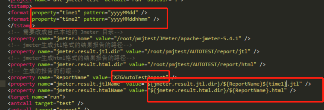 1)jmeter.home配置和之前创建的jtl、html文件路径。