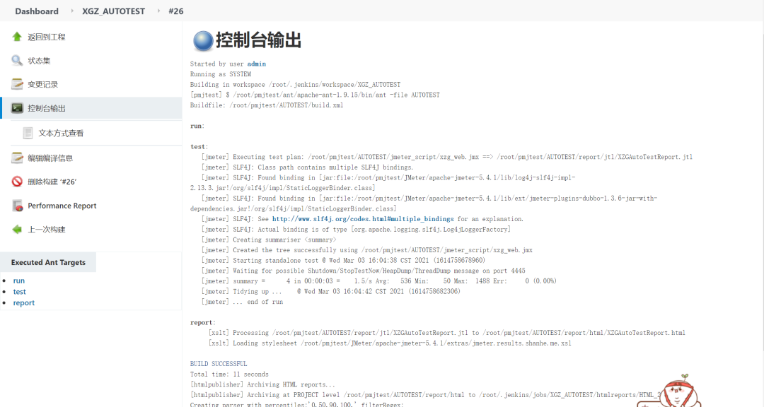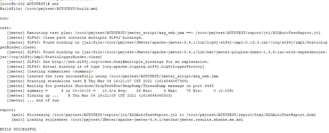 3、在build.xml文件根目录下执行ant,自动运行jmeter跑自动化脚本并生成报告。