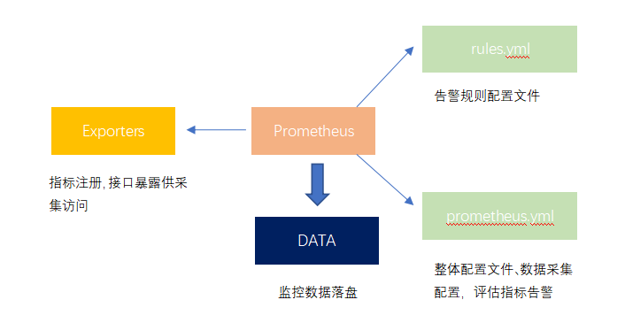 我们需要了解Prometheus的监控流程,才能更好地去运用其完成我们的需求,这里我们从三个方面入手,分别是监控配置文件、告警规则配置文件以及整体运转流程。