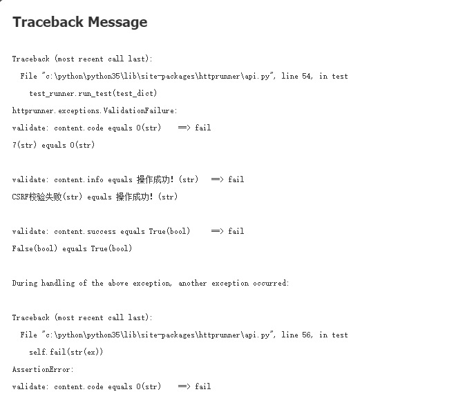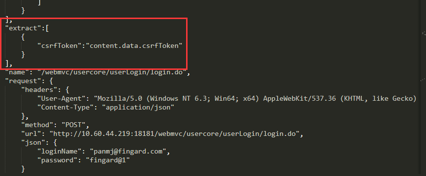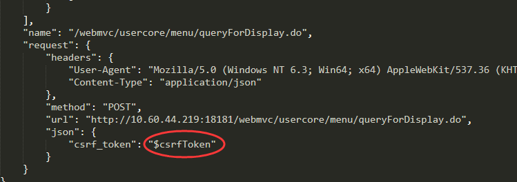 这份报告中登录涉及的后面两个请求权限接口失败了。原因是因为提交的csrf_token值是录制时的那个值,新一次登录已经随机生成了新的值,应该取用新值。这也是后面要提到的优化阶段。